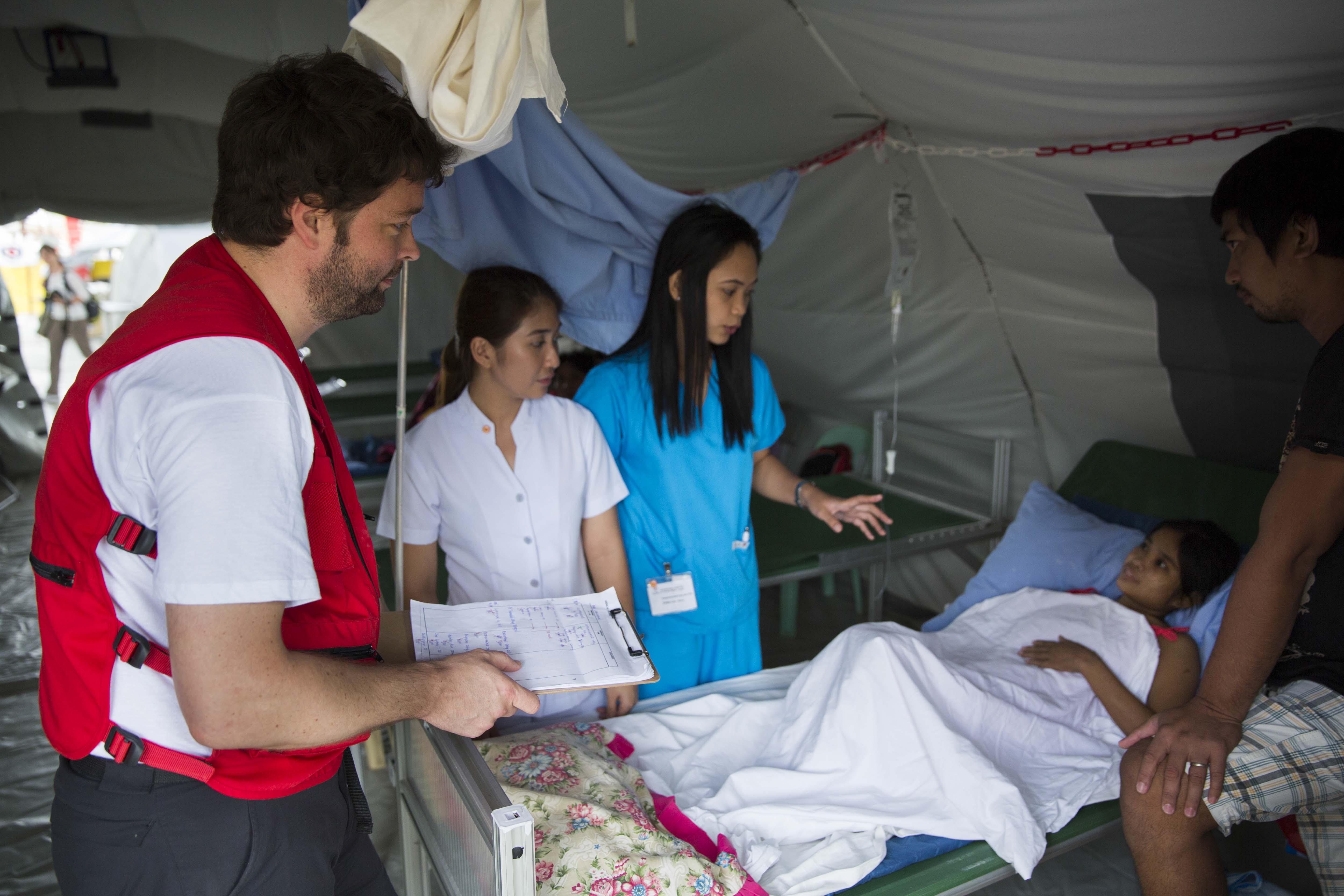 But we do lose one patient despite the surgery. It is my second night in the camp, when one of the drivers wakes me up. Communication between the camp and the hospital is really bad, so the doctor on-call at the hospital often has to send out a driver at night to alert the surgical team. When we get to the hospital we find Barbara, our GP from Australia, in a bit of a sweat and compressing the wound of a young man who has been badly mauled by a machete and who is bleeding profusely from a head wound. We do the emergency surgery at night to stop the bleeding and some more reconstructive surgery the day after, the head wound isn’t by far the only one. But he has lost too much blood and we don’t have a blood bank or any other means to do transfusions. His lungs and his breathing take a turn for the worse and we have to transfer him to Tacloban, because we don’t have any ventilators either. We later get a report that he died the same night. It is another lesson learned: Although we can achieve a lot with the means at our disposal, our resources are limited, and patients who would have survived back at home, will not make it here. And that’s just the way it is.