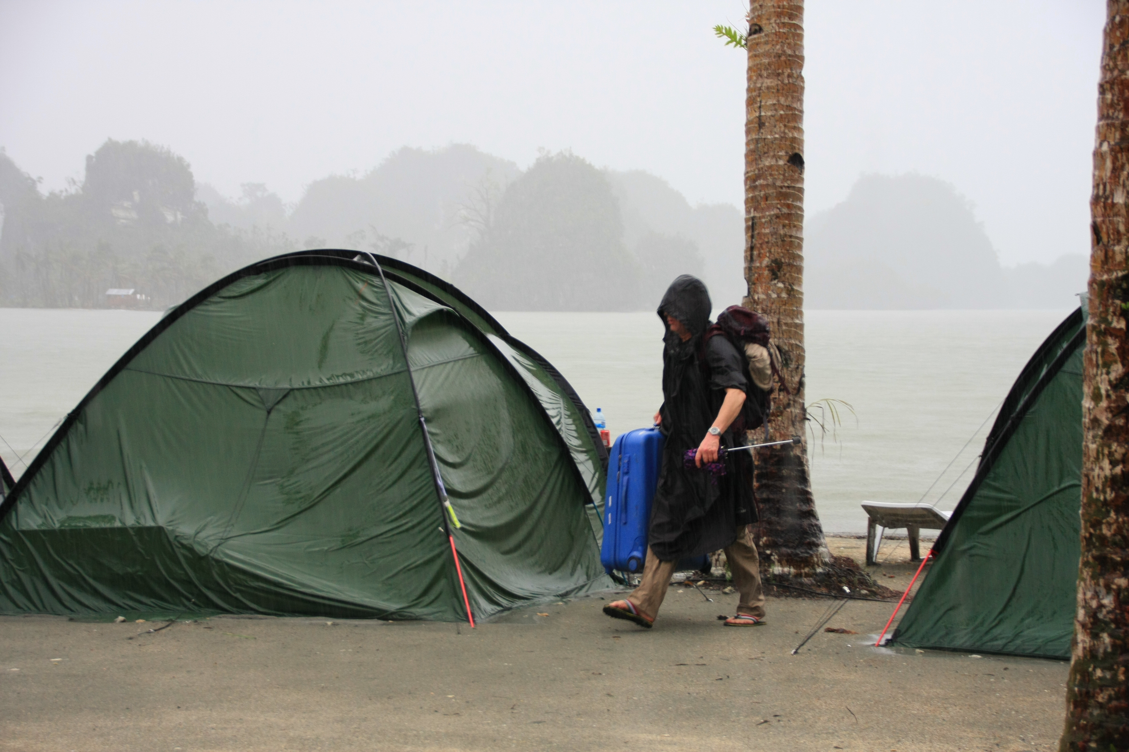 The rain is bad enough, but as the wind increases and bigger waves start hitting our little beach and the tents, it becomes obvious to everyone (even the ICRC) that our lives as happy campers have come to an end. Alex, our Croatian (soon Icelandic) technician and quite a character, cuts through the crap, and -with the help of a bunch of Philippino carpenters and some plywood turns the conference room of the hotel of the resort into a row of little rooms. The roof has been repaired and for the first time in a long time we are dry. Although plywood isn’t exactly sound proof and snoring is an issue, we feel like kings and queens in our 1.5 x 3m luxury suites. Life is good!